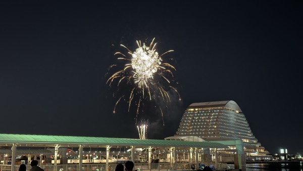 さんざん歩いて、そろそろ帰るかと歩いてたらちょうど花火が打ち上がりました。