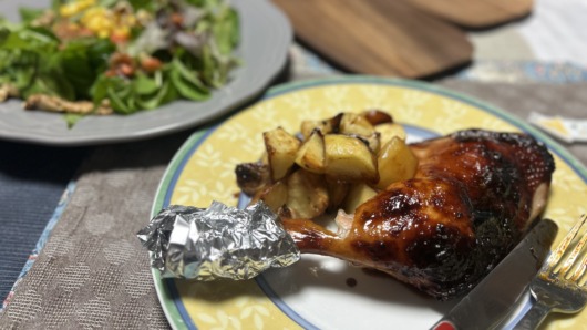 クリスマスイブはローストチキンを焼きました。オーブンまかせだけど好評でした。