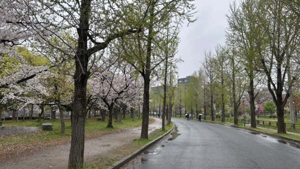 本当ならお花見客がたくさんいるのだろうけど、雨のためガラガラ。