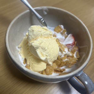 あとはコーンフレーク混ぜたりフルーツ混ぜたり。