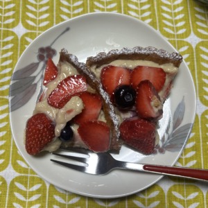 家に帰ったら、朝の間に仕込んでおいたケーキを。